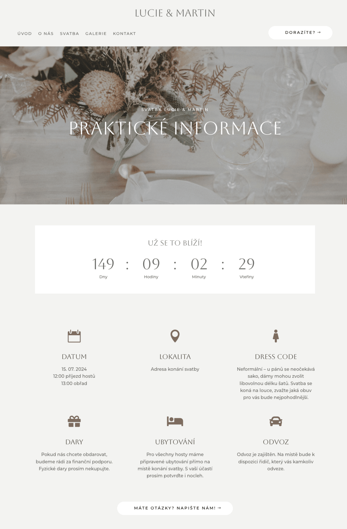 Demo verze šablony: https://svatebnisablona.demo.lucietomanova.cz