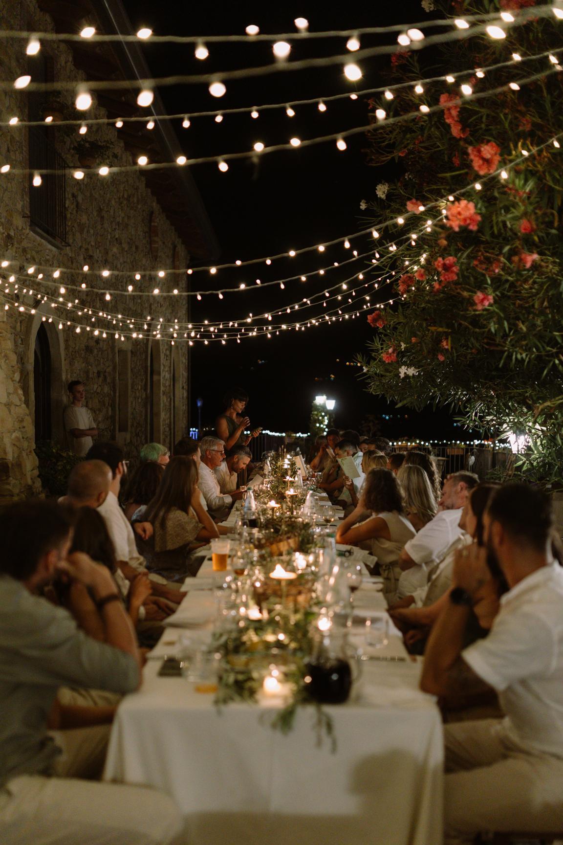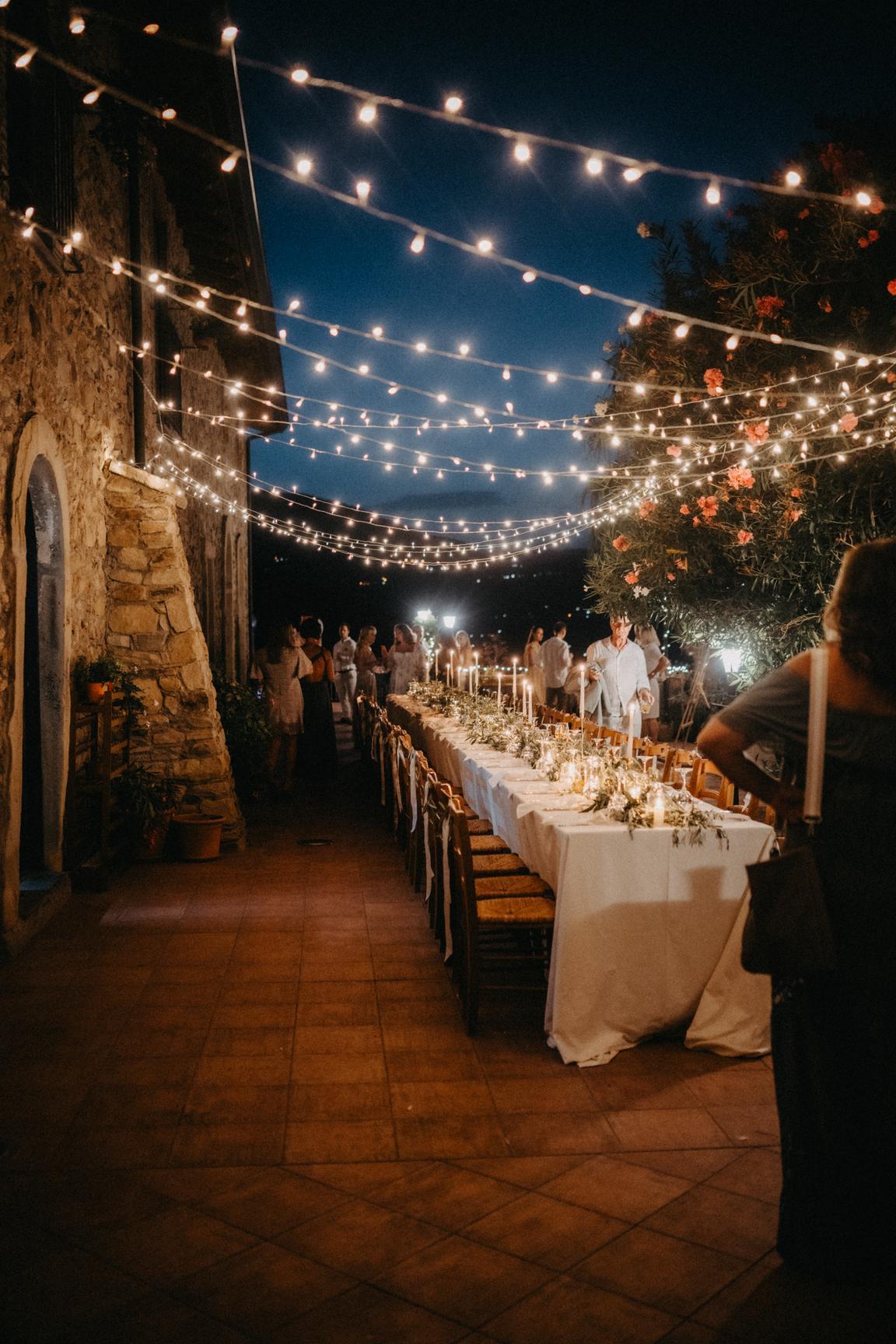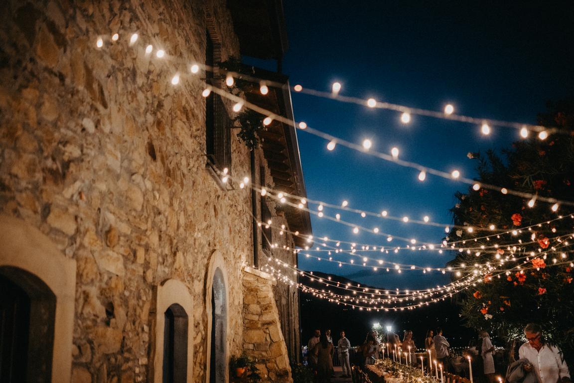 Na skladu máme kolem 500 metrů drobných žlutých světýlem po 60m (do zásuvky), které večer krásně doplní atmosféru svatby. K dispozici máme i spoustu menších světýlek na baterky, včetně světelné stěny.