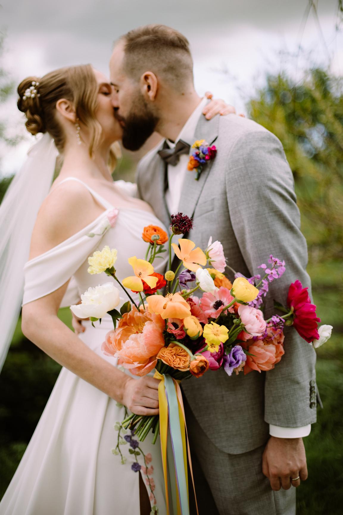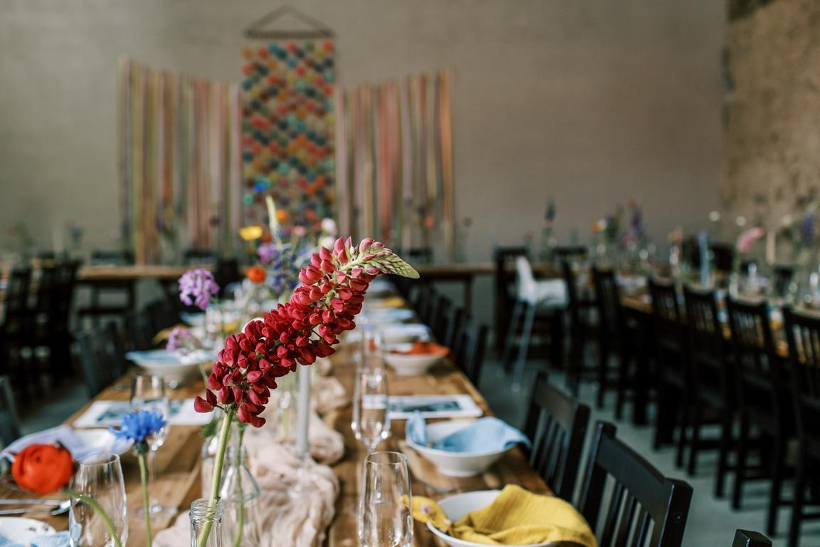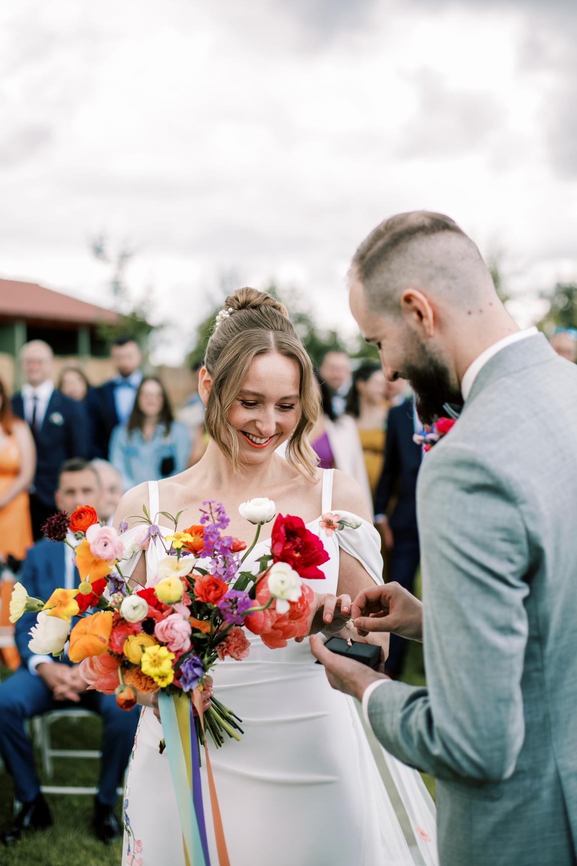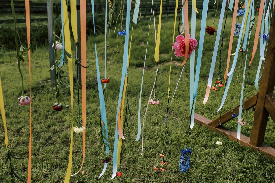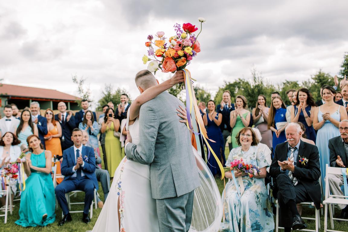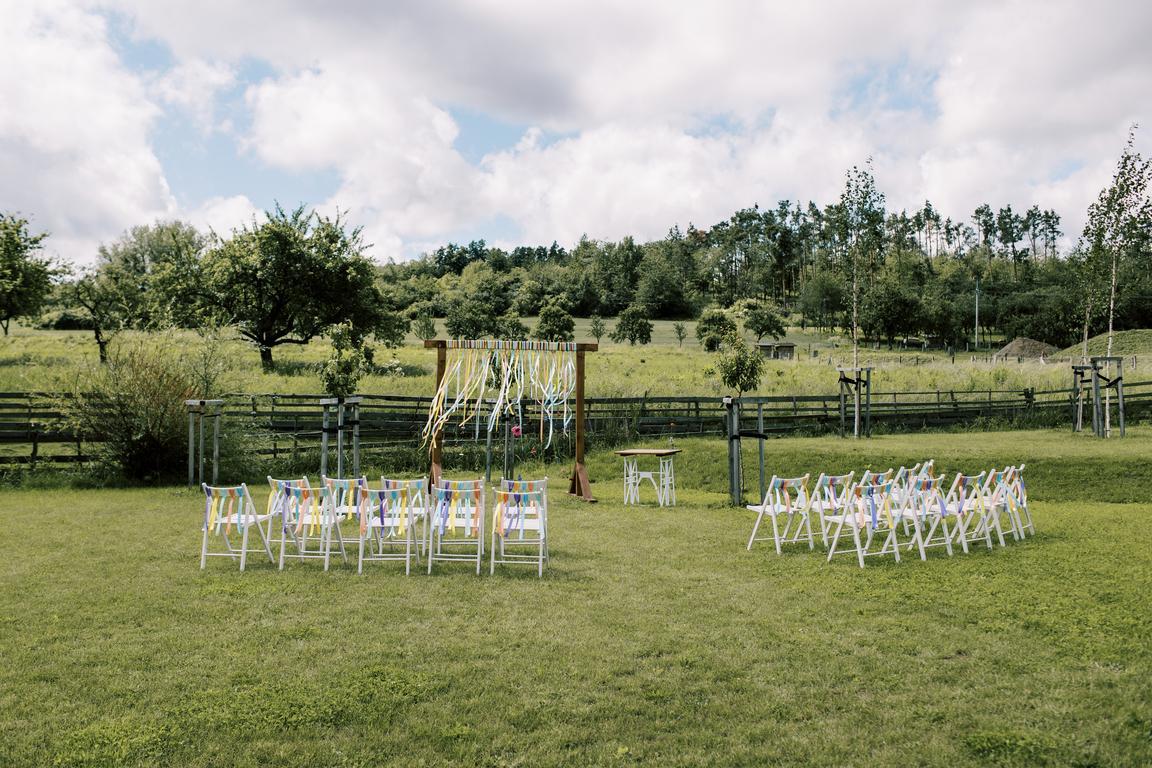 Pestrobarevná výzdoba na přání nevěsty ve spolupráci s květinami naší Káji (Kytky a Nosy).