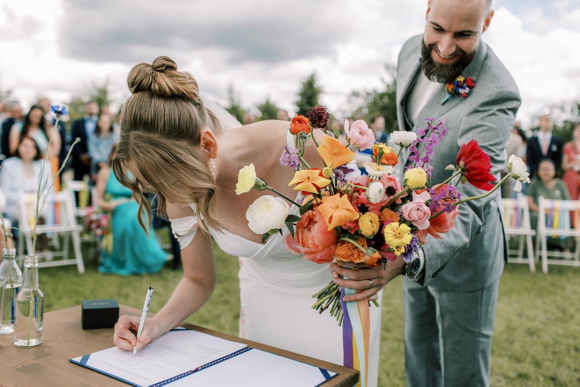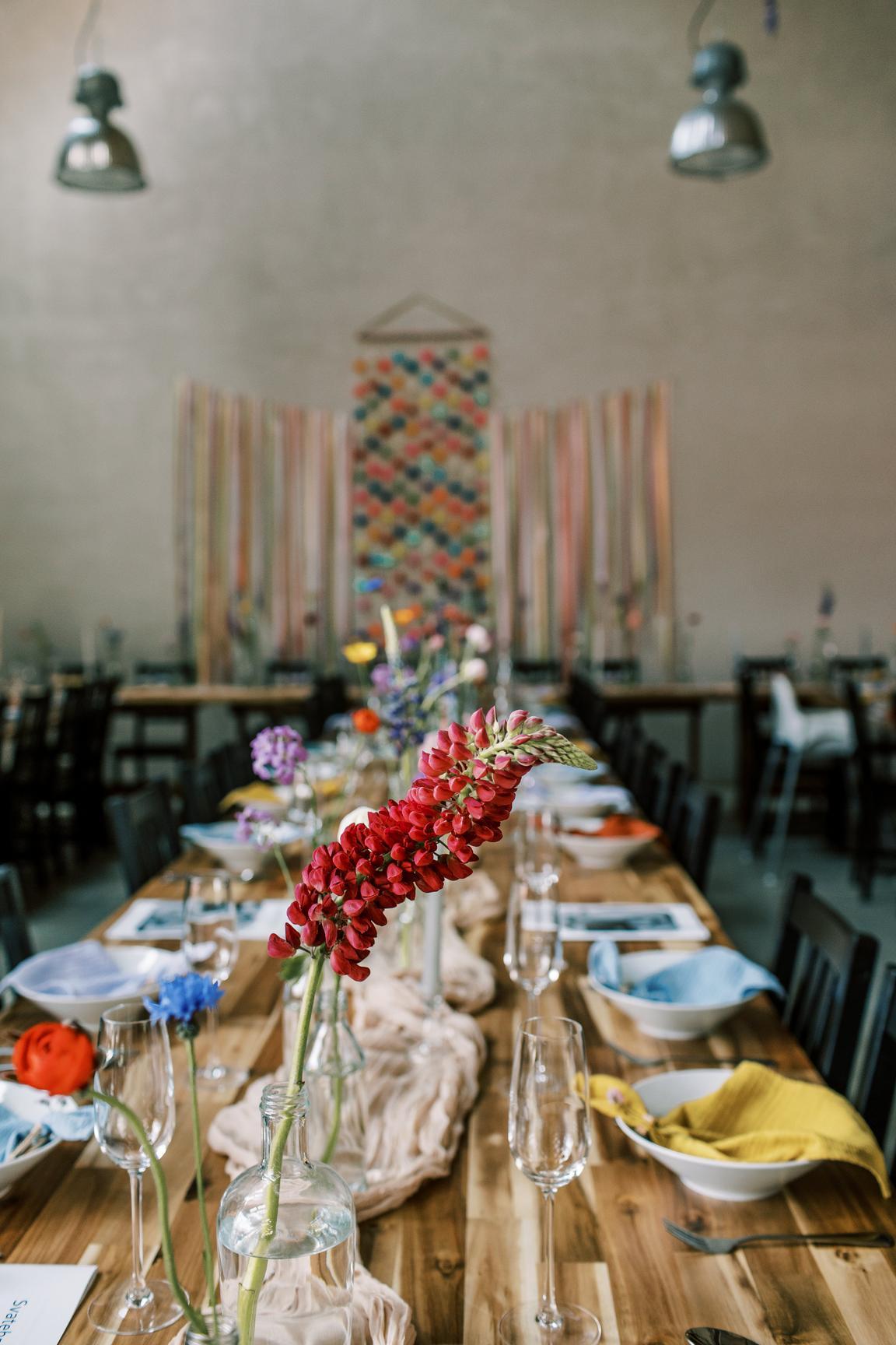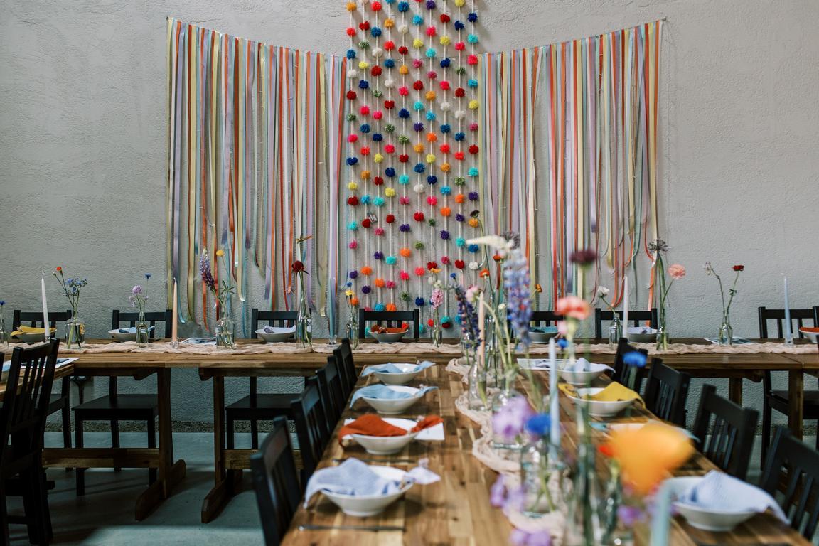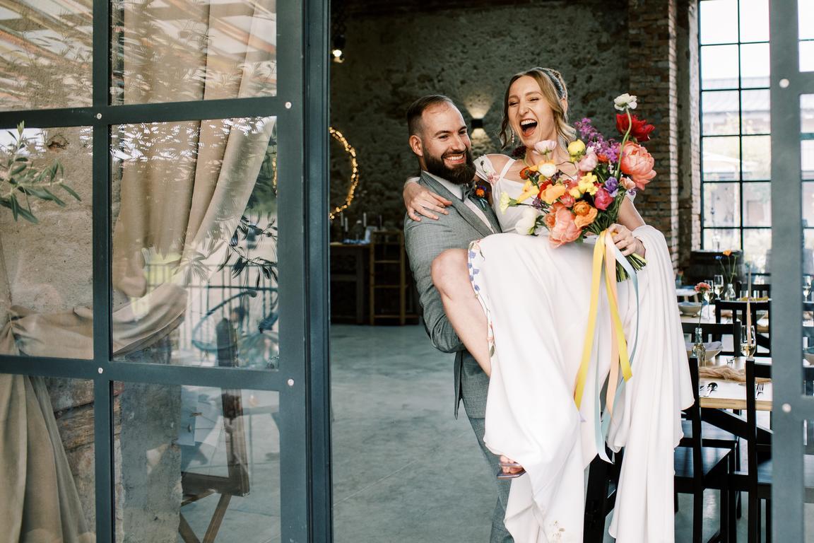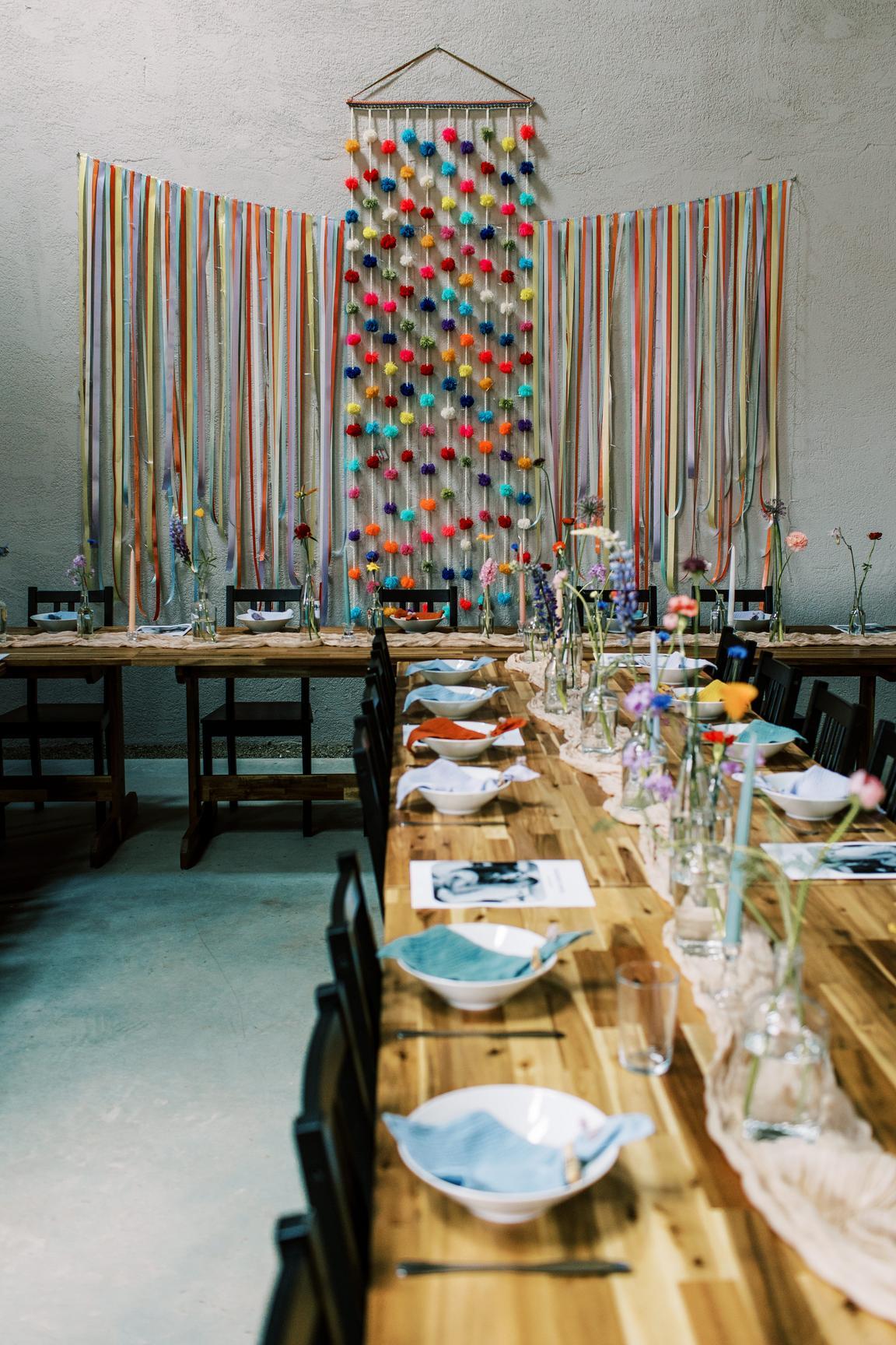 Pestrobarevná výzdoba na přání nevěsty ve spolupráci s květinami naší Káji (Kytky a Nosy).